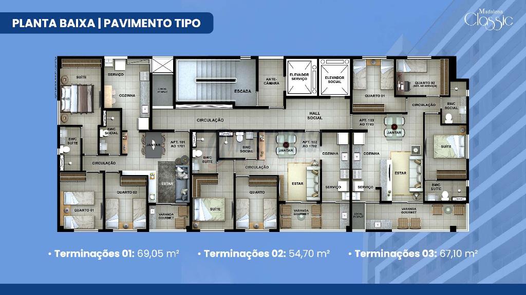 02 Elevadores, 3 Unidades por Andar, 17 Andares, Gerador, Playground, Sala de Ginástica, Bicicletário, Piscina,