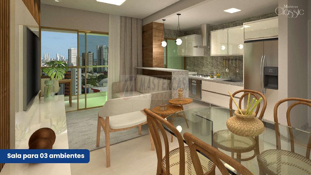 Área privativa de 54.70 m², 1 Sala(s) para 2 ambiente(s), 2 Quarto(s) sendo 1 suíte(s), 1 vaga(s) de garagem, Cozinha, Área de Serviço, Sala de Jantar, Sala de Estar, Varanda, 1 WC Sociais,